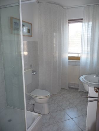 Im OG befinden sich zwei abgeschlossene Schlafzimmer mit Doppelbetten, die Sauna sowie das Bad mit Dusche und WC.