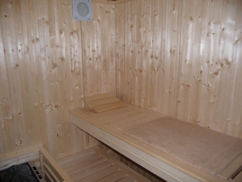 Im OG befinden sich zwei abgeschlossene Schlafzimmer mit Doppelbetten, die Sauna sowie das Bad mit Dusche und WC.
