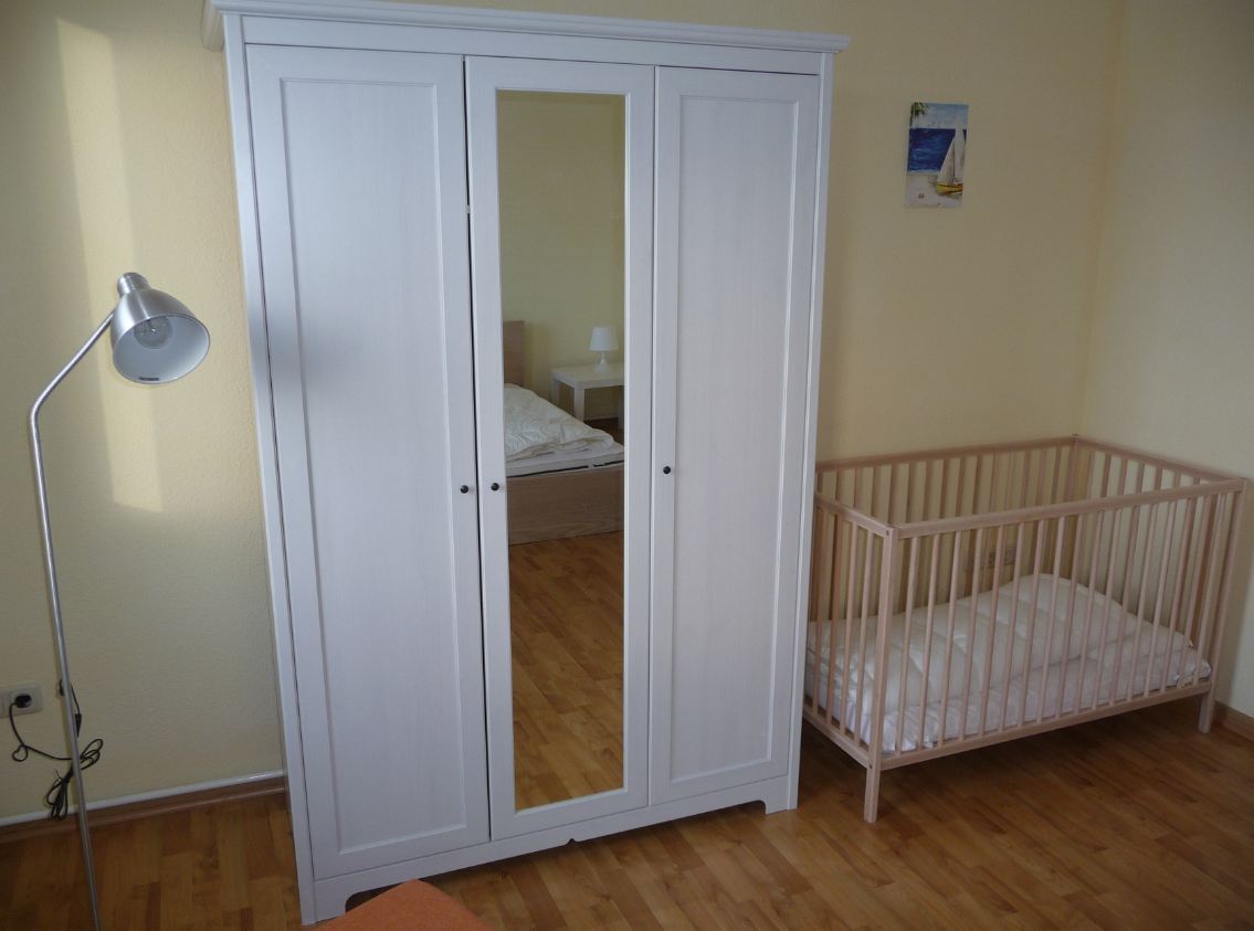 In dem grösseren Schlafzimmer befindet sich zusätzlich ein Kinderbett und eine weitere Aufbettungsmöglichkeit.