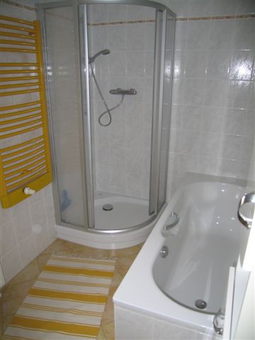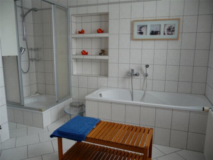 sowie ein Bad mit Dusche und Badewanne.