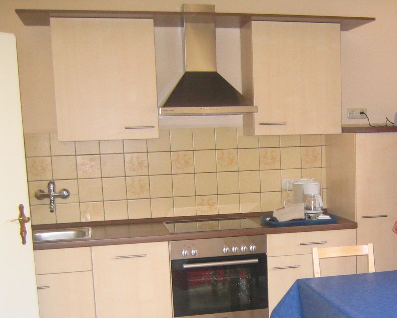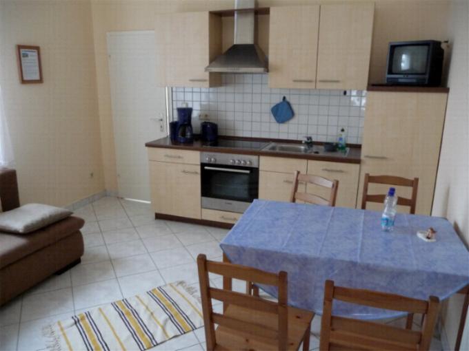 verfügt über eine Wohnküche mit EBK (Spülmaschine, Ceranfeld ..) Essplatz und Aufbettungsmöglichkeit,