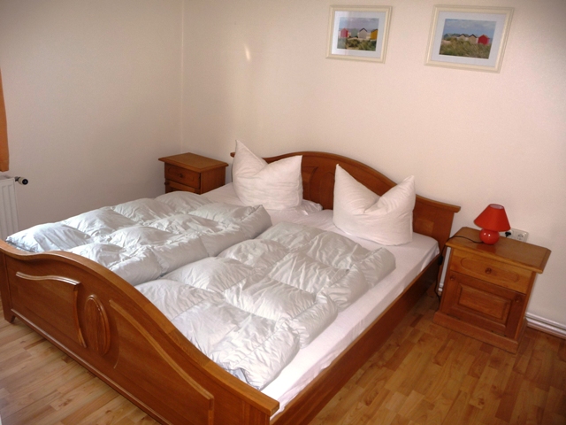 ein separates Schlafzimmer mit Doppelbett