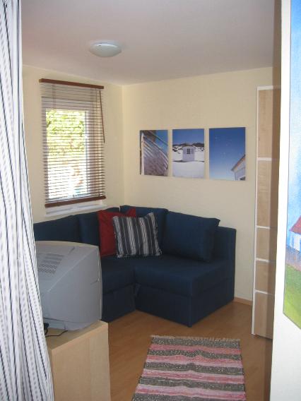 verfügt über einen Wohnraum mit Essplatz und EBK (Spülmaschine, Ceranfeld...), 1 Schlafzimmer, Bad, Sat-TV mit ca. 28 m² WF. Alternativ kann das Appartement zusammen mit einem der Bungalows als Einheit genutzt werden (mit dann ca. 50 m², 2 Bädern ...)
